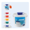 - Ouvrir et positionner le rouleau de chiffonnettes à l’intérieur du seau distributeur